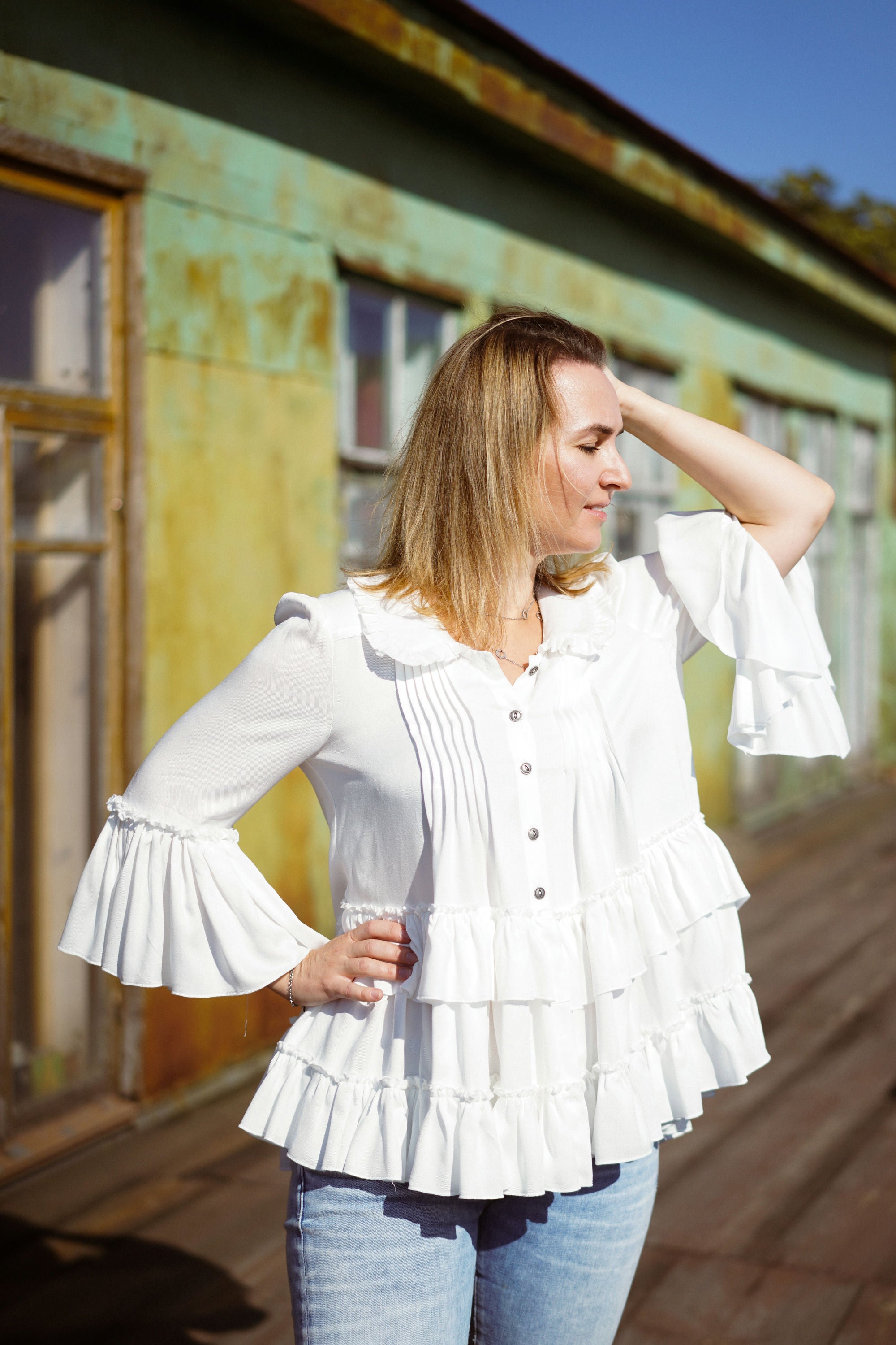 Однотонный жакет свободного кроя. Укороченный рукав. Ткань — 100% вискоза.