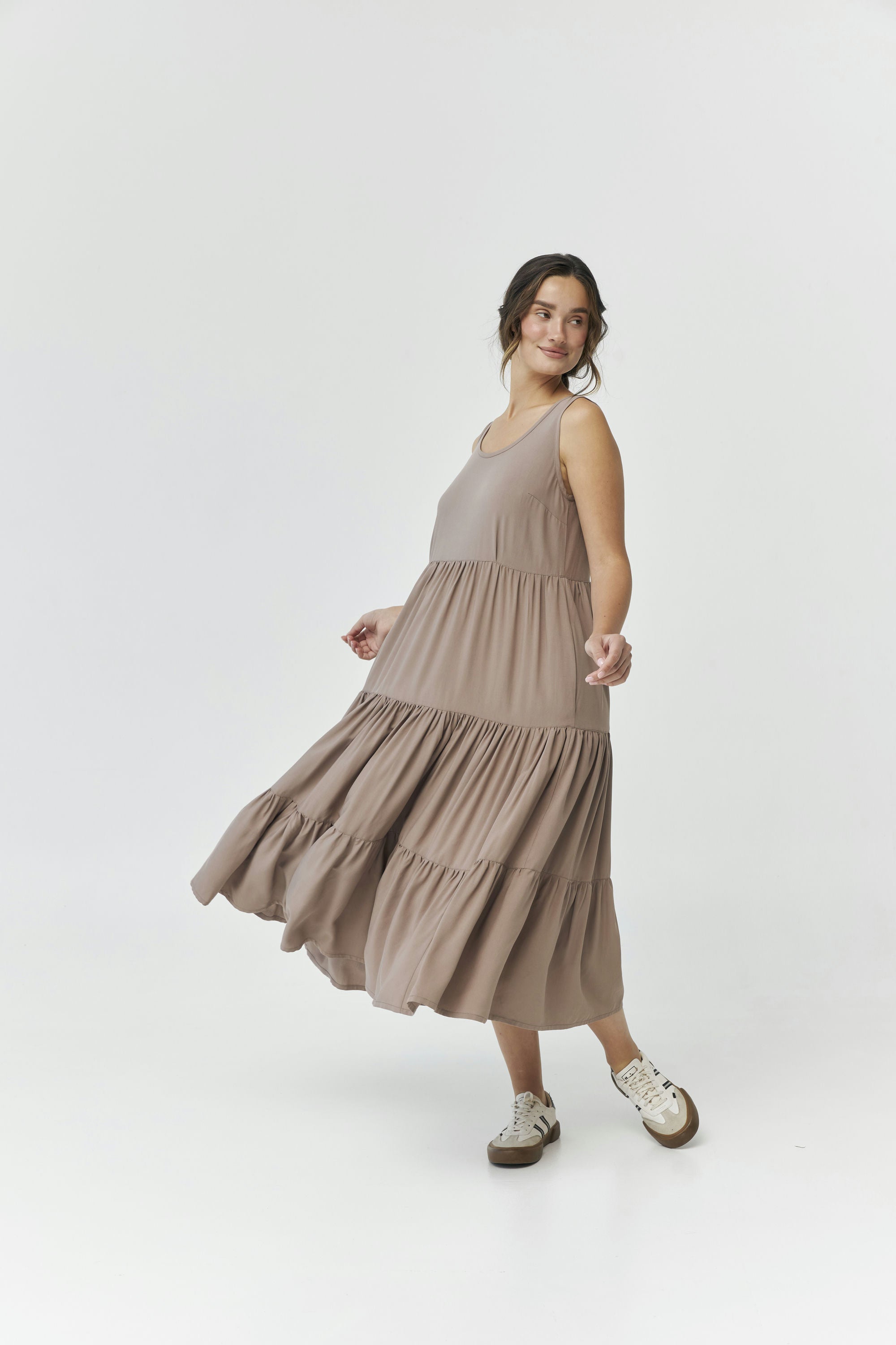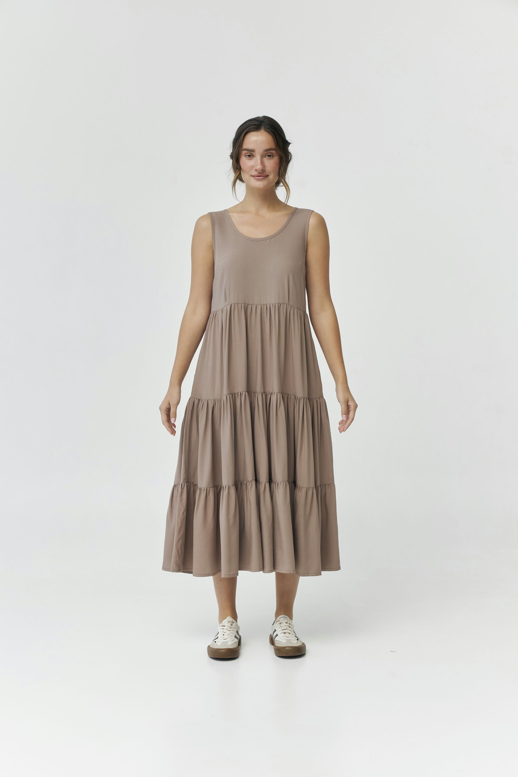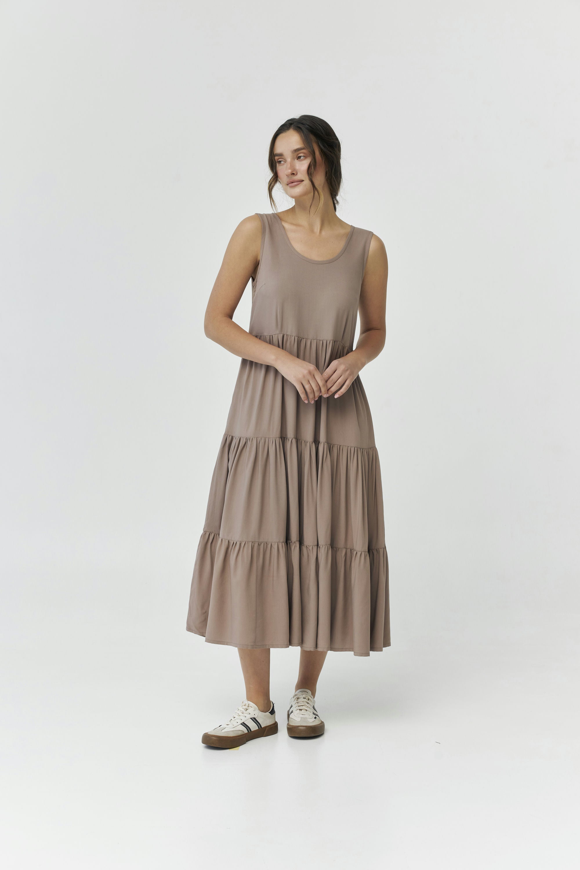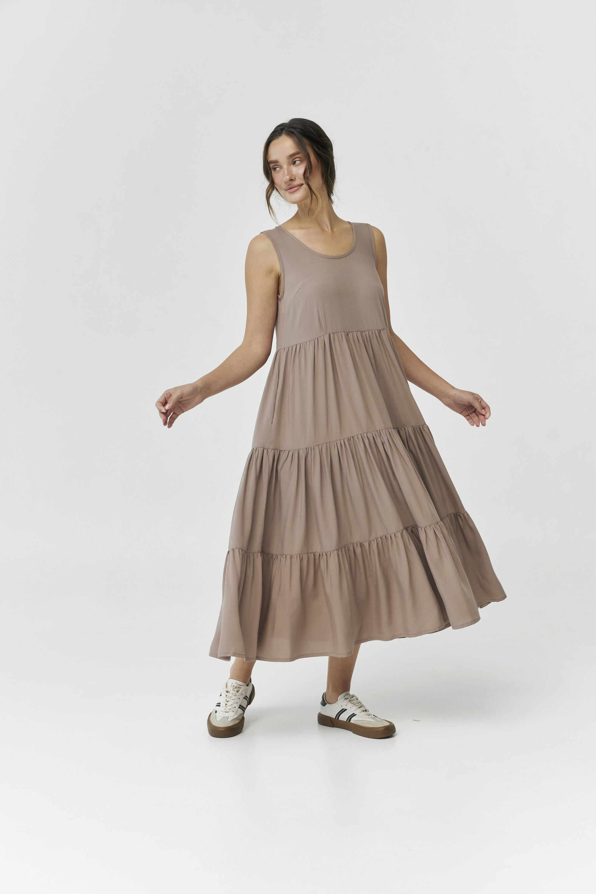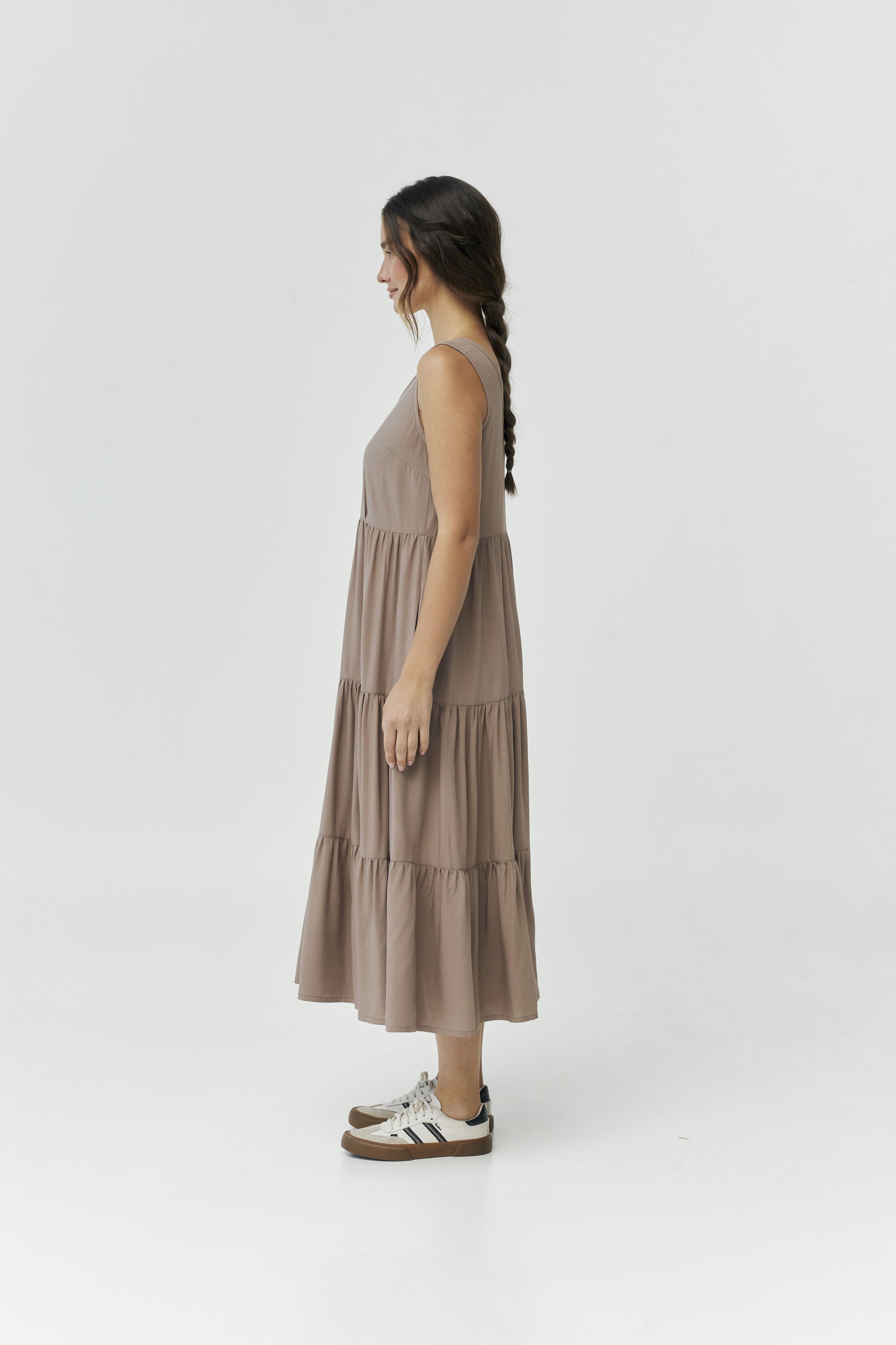 Сарафан миди, свободного кроя ярусами с кокеткой над грудью. Окружность подола 4.5 метра. Ткань 100% вискоза.