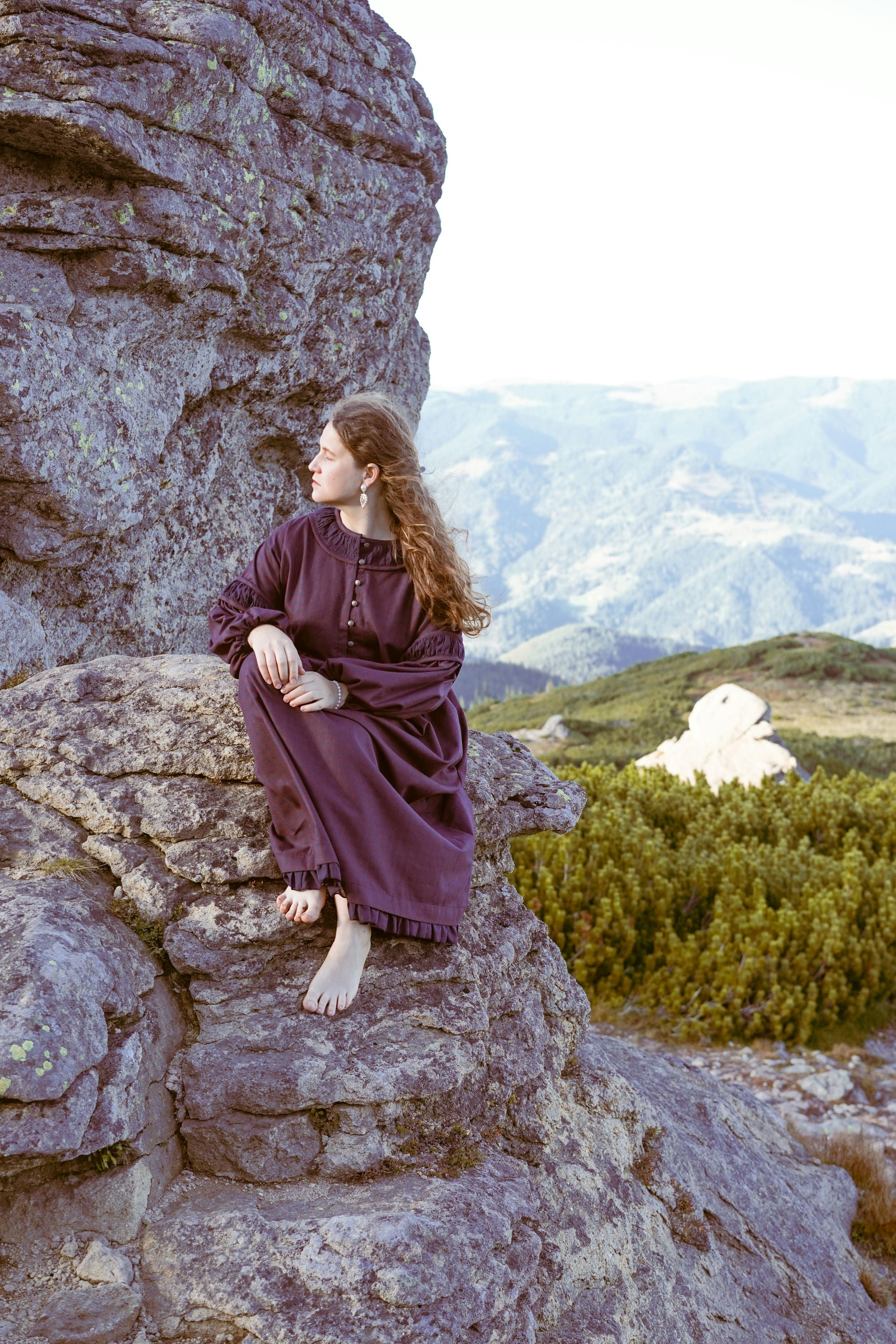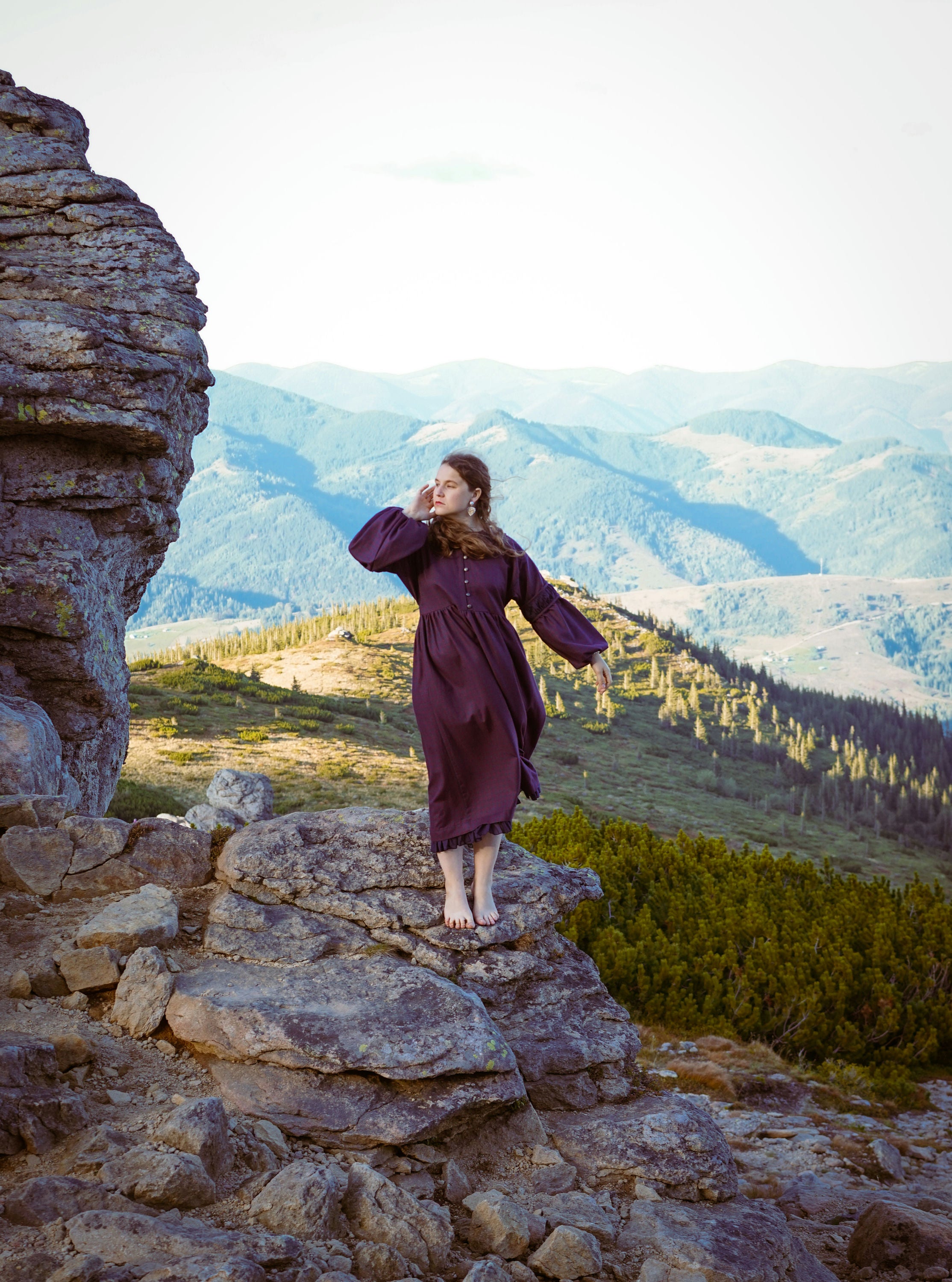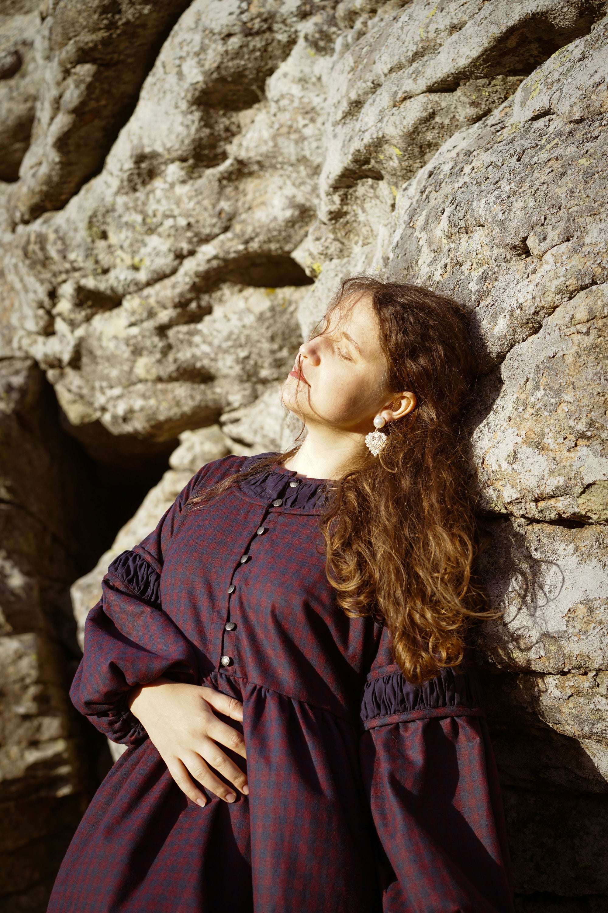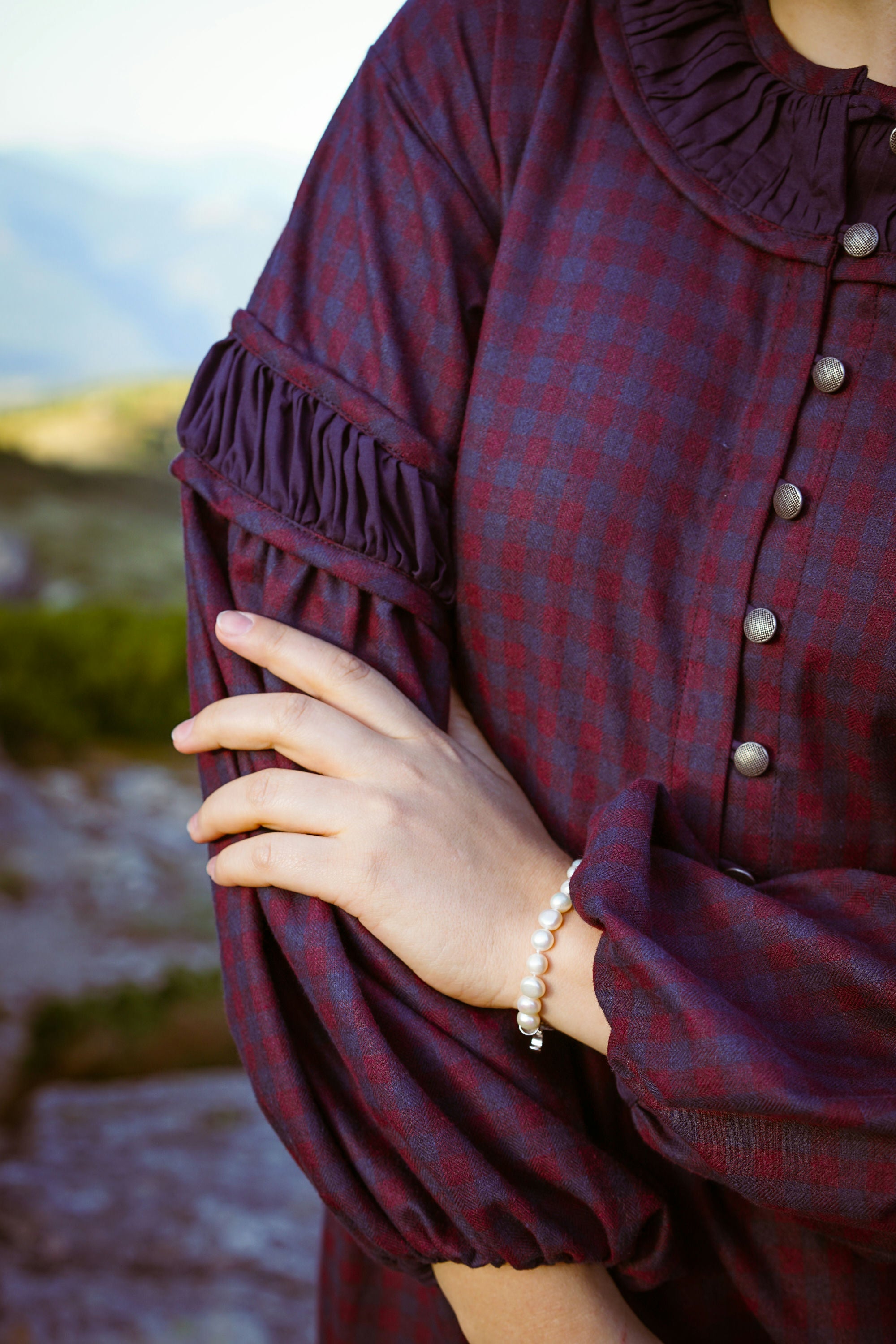 Теплое платье миди из хлопковой фланели с завышенной талией, кокеткой на пуговицах и карманами. С пышным длинным рукавом и ластовицей. Вырез горловины и рукава украшены батистом. Материал фланель и батист.