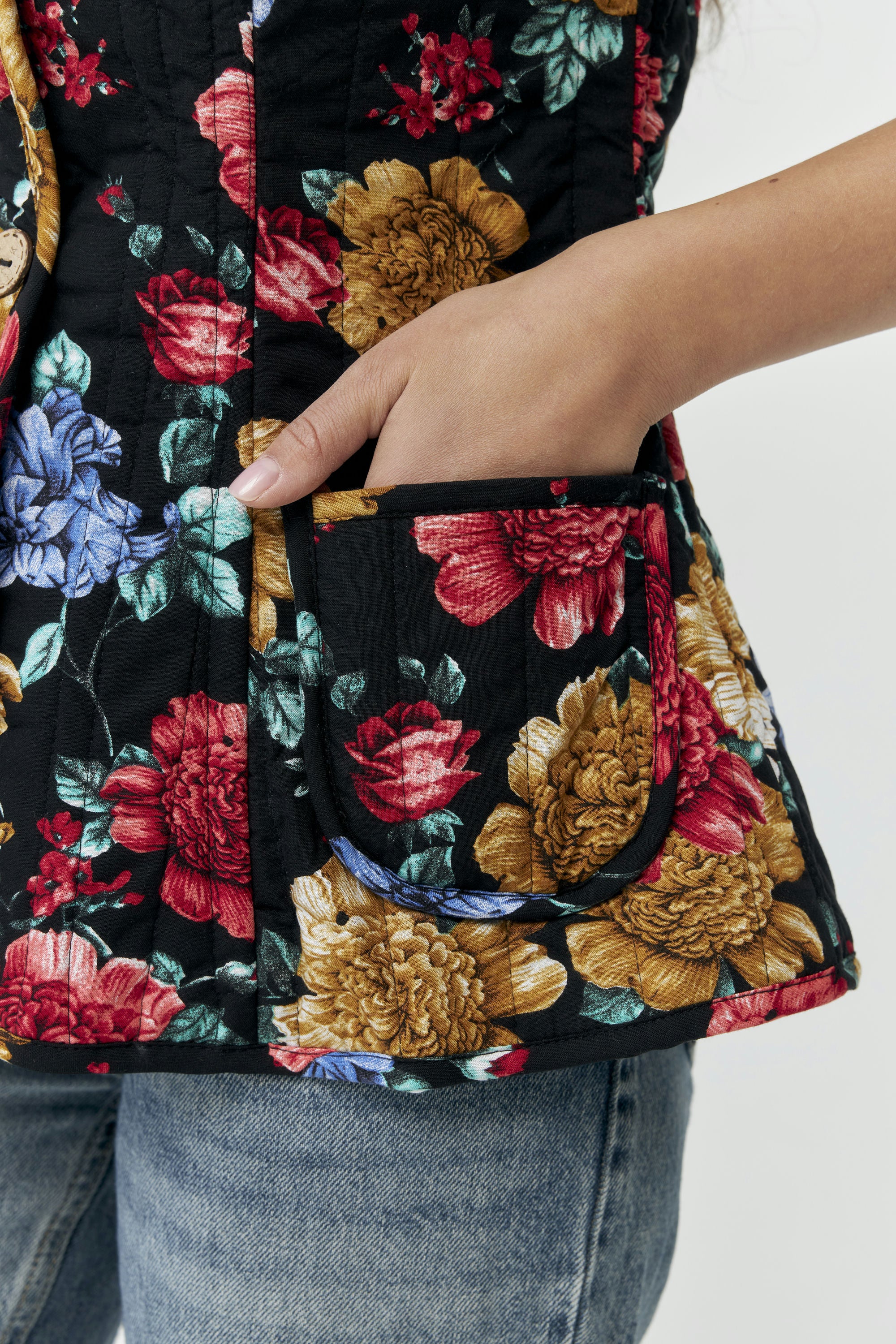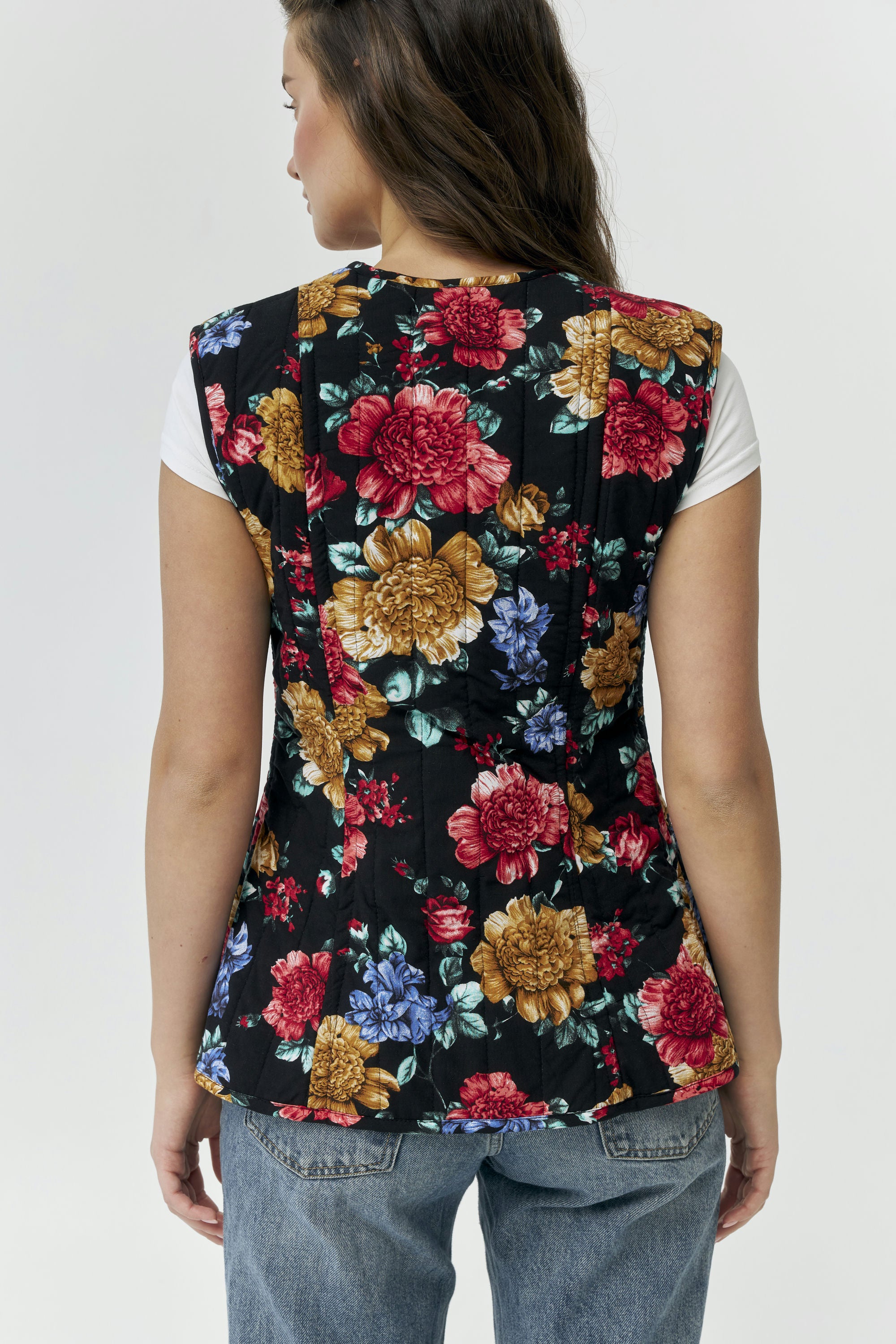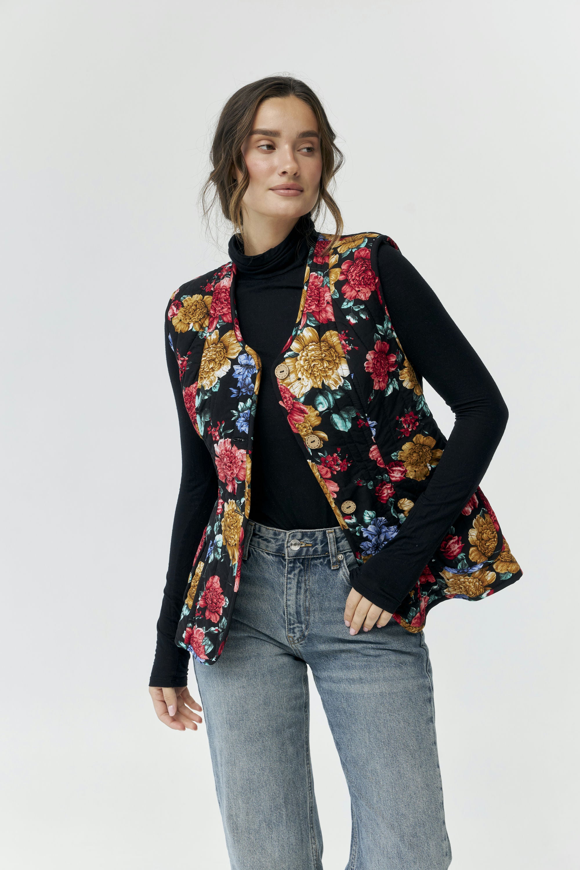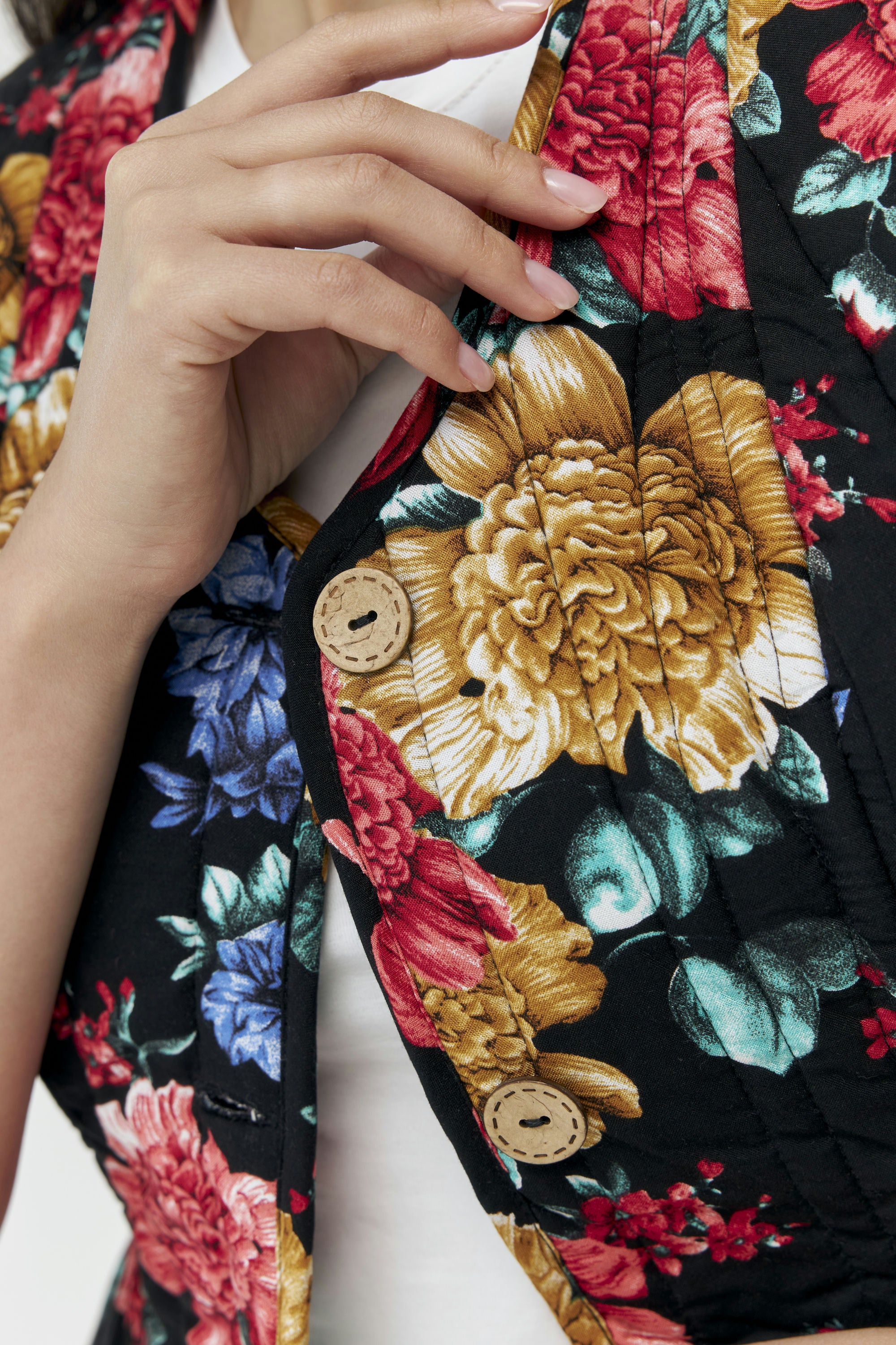 Тёплая приталенная жилетка. Застёгивается на пуговицы. Ткань - штапель. Подкладка - хлопковая. Наполнитель - шерстяной ватин.
