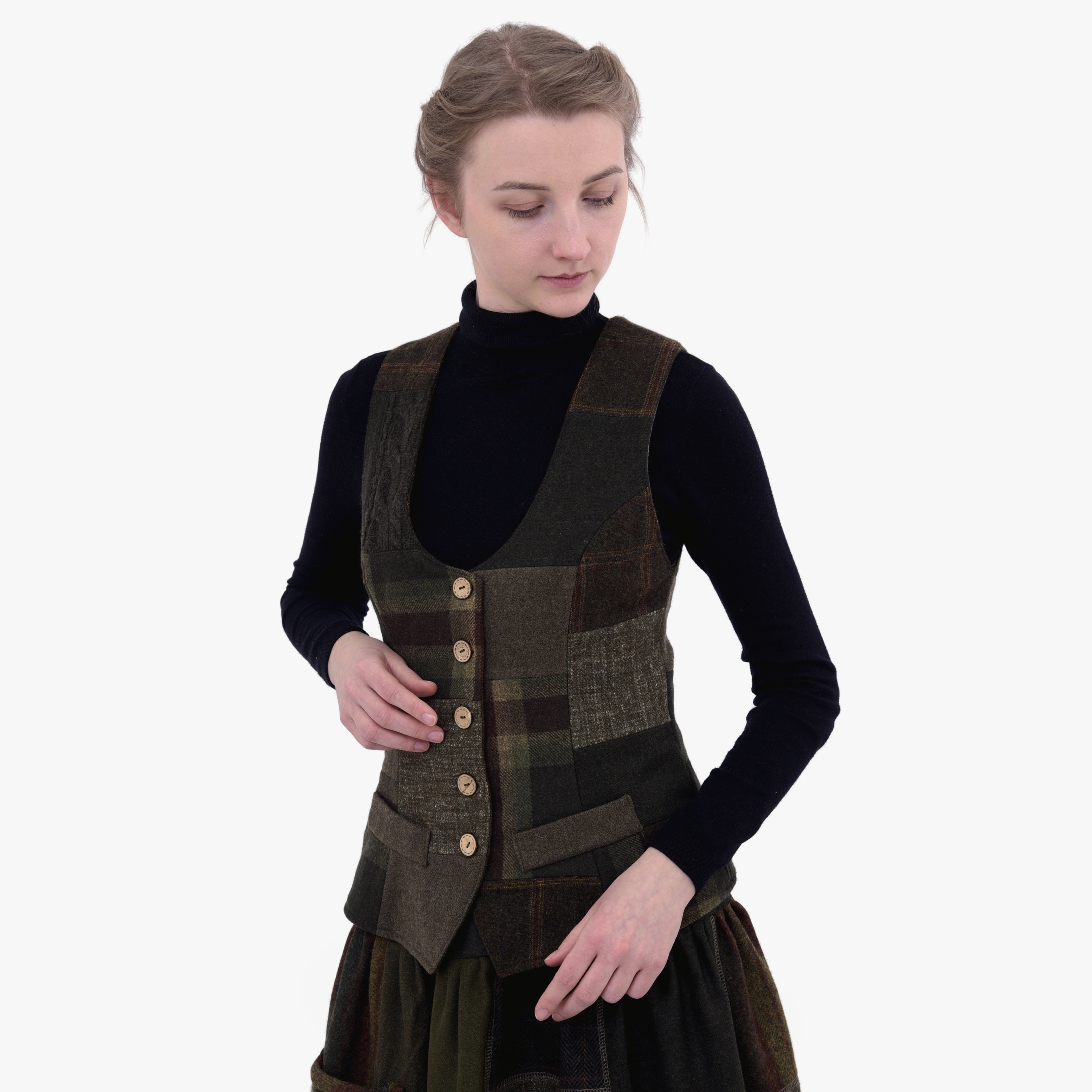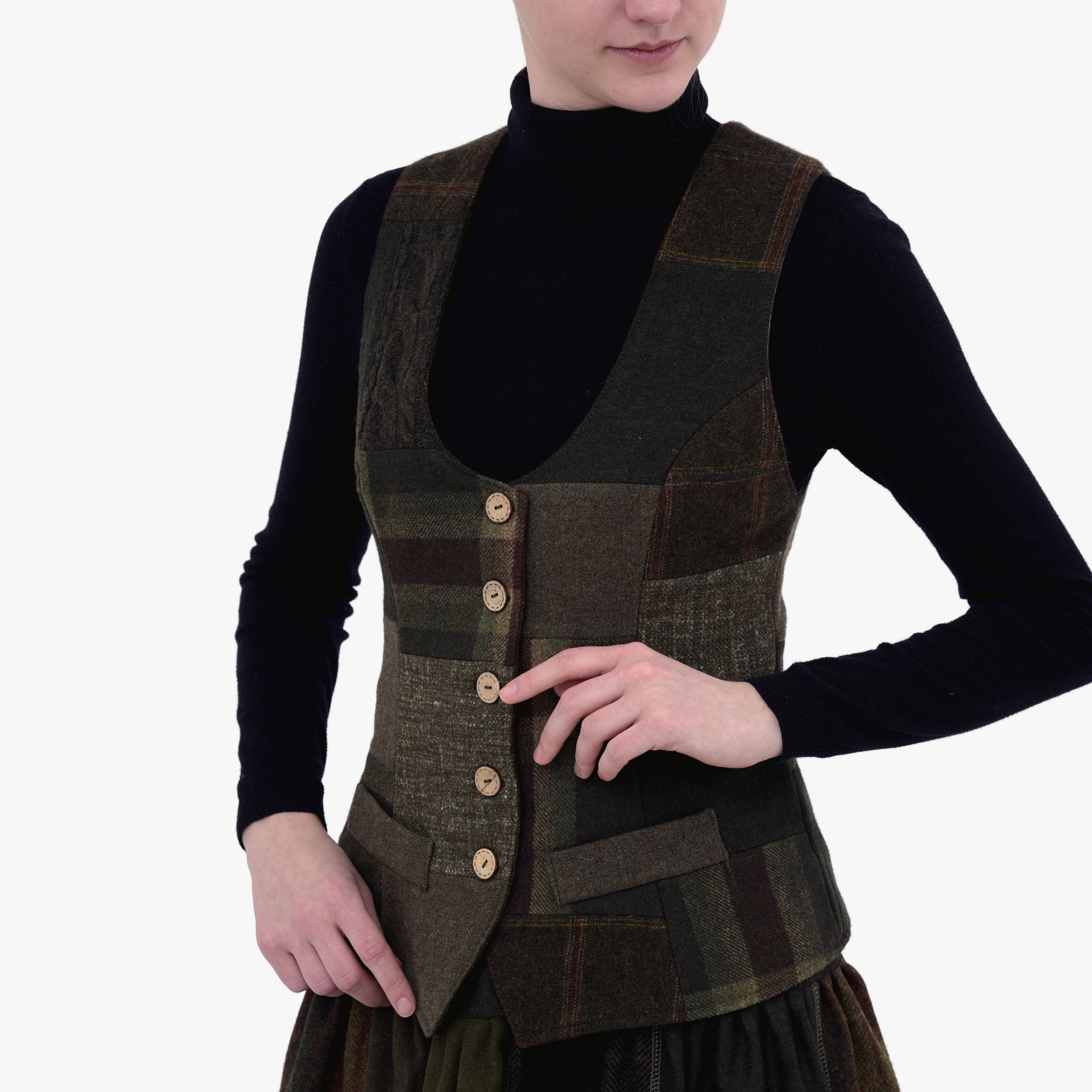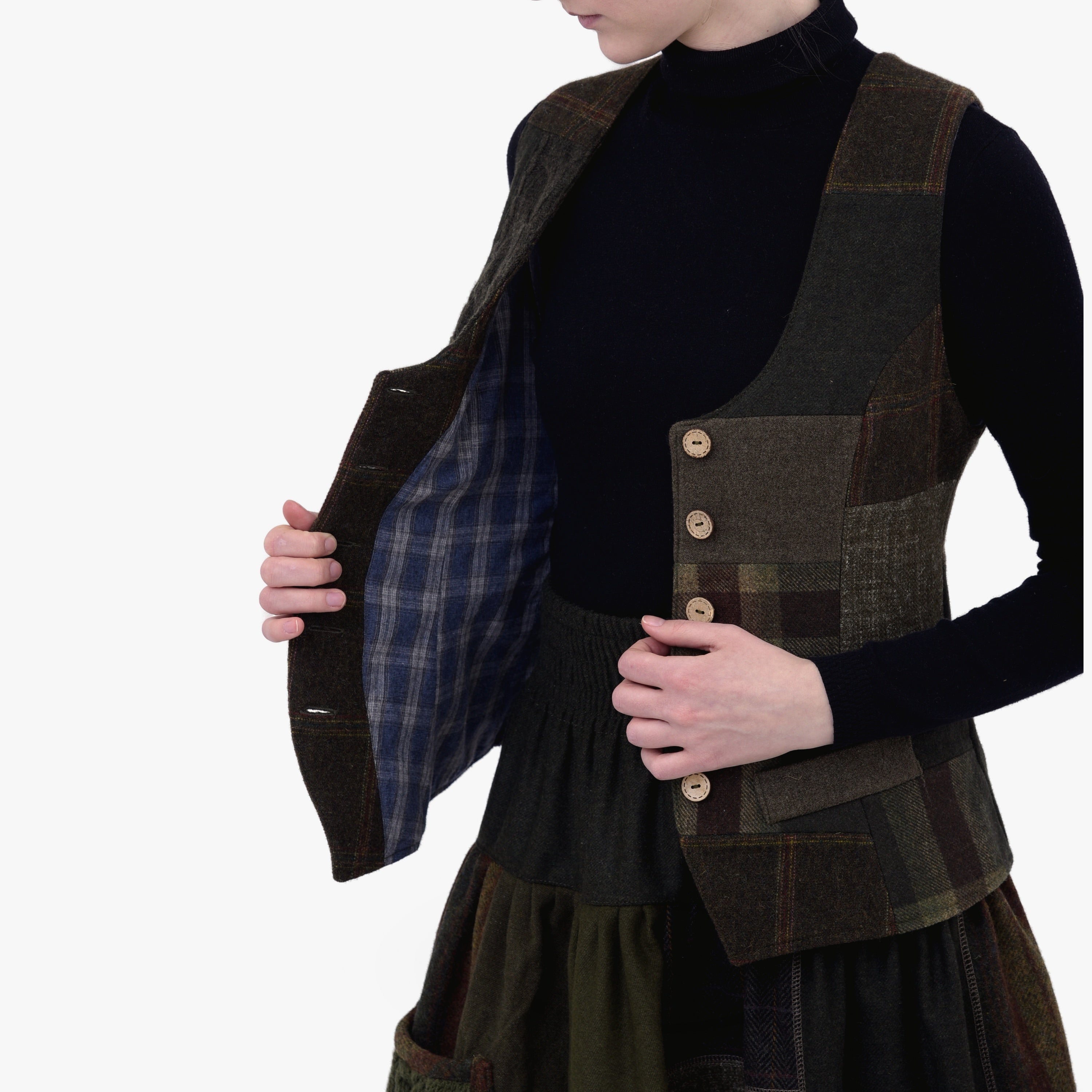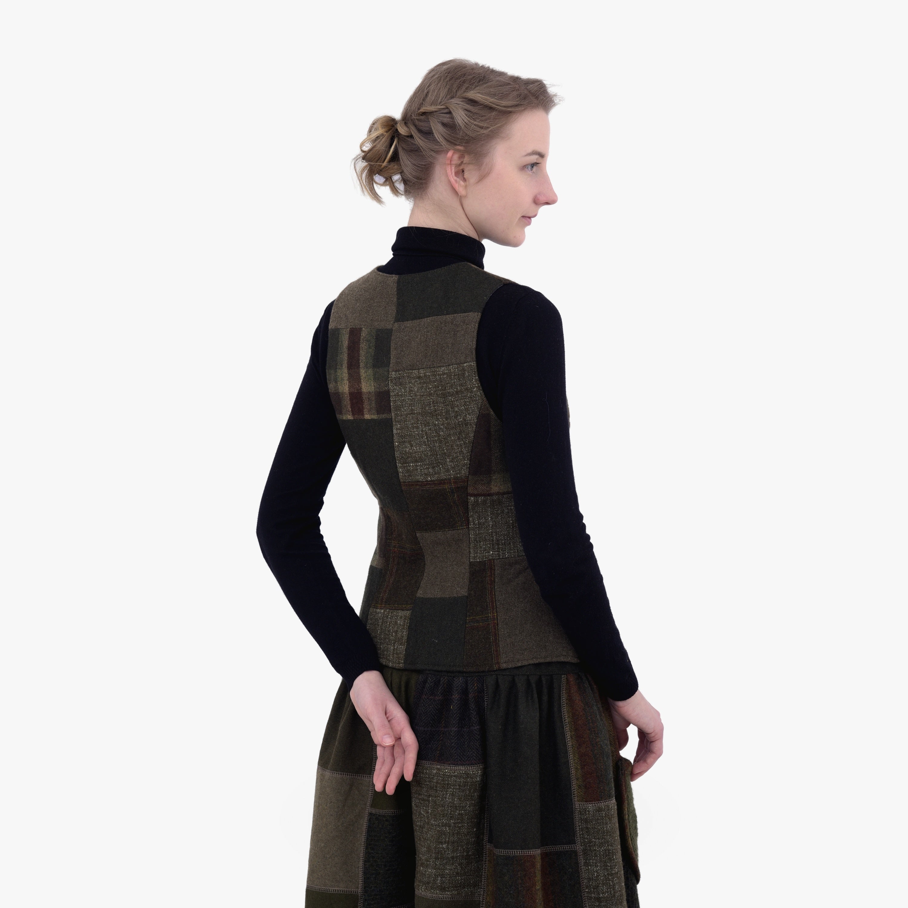 Тёплая приталенная жилетка. Выполнена в технике пэчворк. Набор лоскутков подбирается из имеющихся, сохраняя цветовую гамму. Застёгивается на пуговицы. Ткань - шерсть. Подкладка - хлопок.