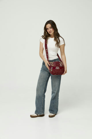 Сумка пэчворк с хлопчатобумажной подкладкой и карманом внутри. Застегивается на пуговицу, имеет размеры: 40 см на 38 см, длина ручки 70 см. Ткань 100% вискоза и хлопок.